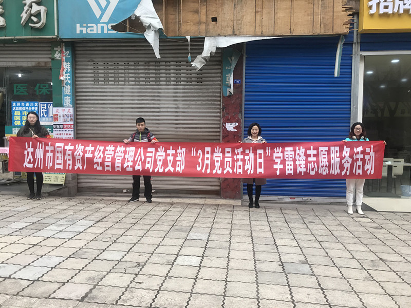 3月6日“黨員活動日”,達州市國資公司精心組織,分組深入秦巴物流園區、西南職教園區項目現場、授權管理的國有資產區域,現場宣講雷鋒精神,并組織召開理論學習會,開展豐富多彩的“黨員活動日”主題活動。